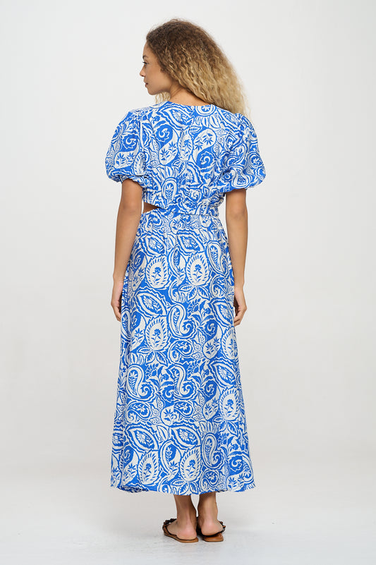 Athena Blue Paisley Cut-Out Maxi Dress