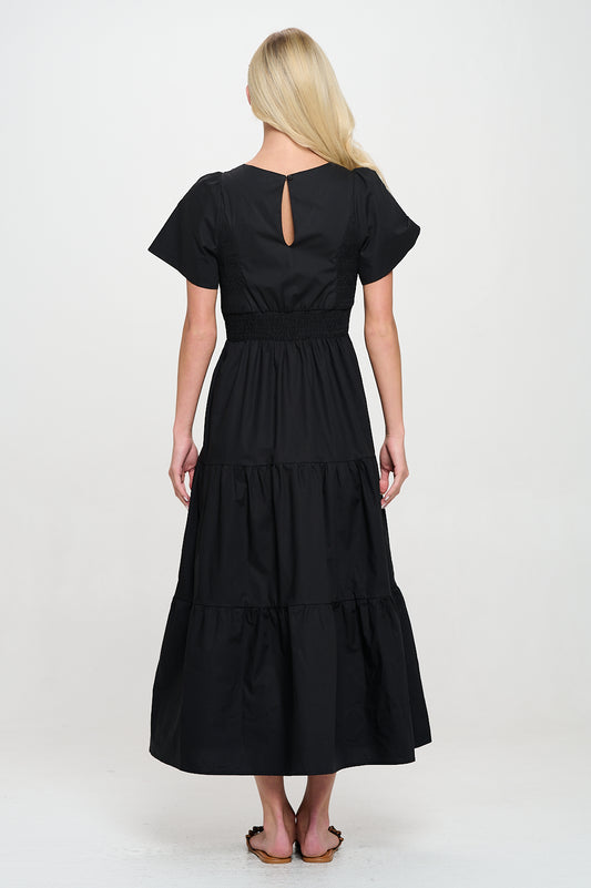 Black Poplin Side Smock Maxi Dress