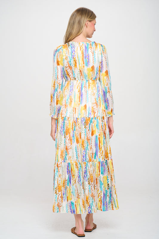 Lemon Grove Delight 3/4 Sleeve Maxi Dress