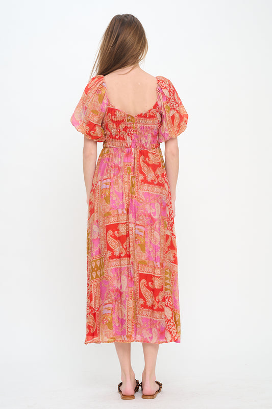 Mediterranean Majesty Puffy Sleeve Maxi Dress