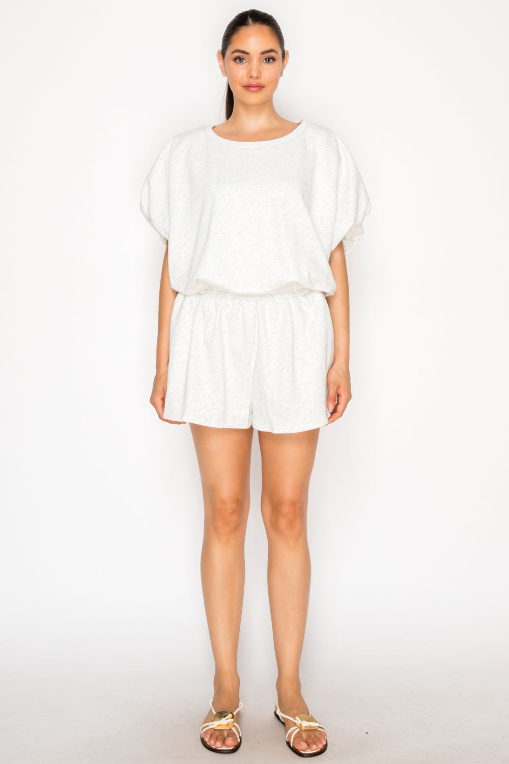Channel the art of sigá-sigá (slowly, slowly) in this sophisticated two-piece lounge set. Crafted from the softest French terry, its relaxed dolman-sleeve top drapes beautifully, pairing perfectly with the comfortable, easy-to-wear shorts. This set is a masterpiece of low-key luxury, proving that true style is, above all, effortless.