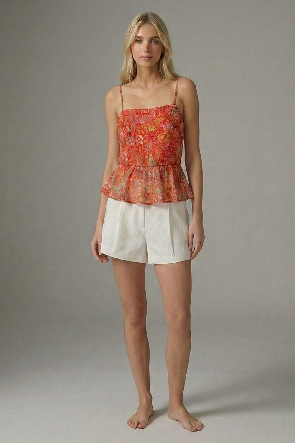 Brighten up your wardrobe with this vibrant red ditsy floral top from Meet Me in Santorini. Featuring a colorful floral print, this top is designed with delicate spaghetti straps and a smocked bodice for a comfortable and flattering fit. The lightweight fabric and breezy design make it perfect for warm-weather occasions. Pair it with the matching skirt or your favorite shorts for a chic and effortless look that is ideal for casual outings, summer festivals, or beach days.