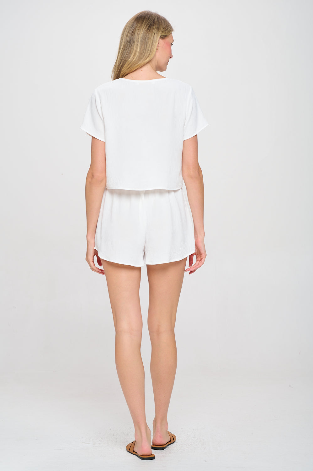 Stay cool and stylish this summer with our Effortless White Two-Piece Set, a must-have addition to your collection of women's clothing. This versatile set features a chic crop top and comfortable shorts, perfect for any casual outing, from beach trips to brunch dates.